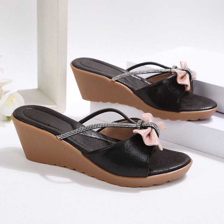 Women's Fashionable Rhinestone Bow-Decorated Wedge Heel Sandals