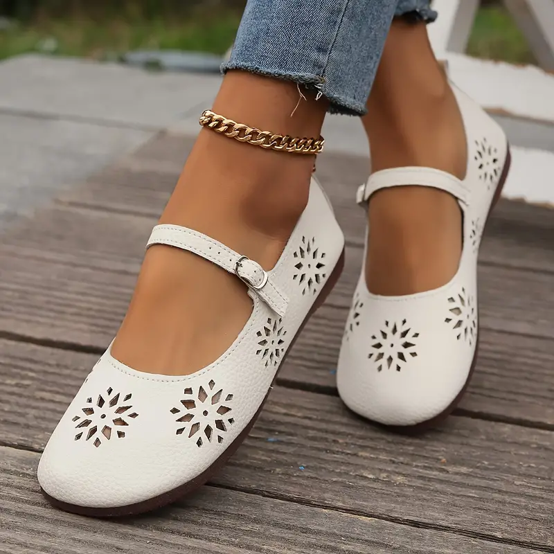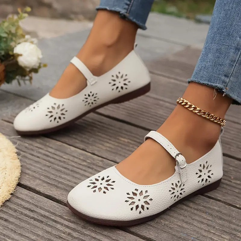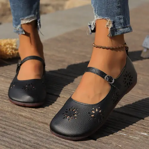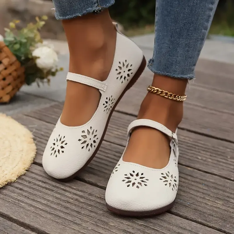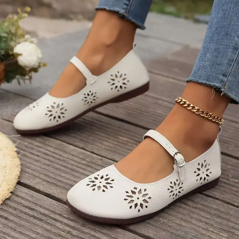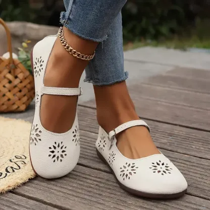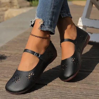 Women's Comfortable Hollow Out Leather Flat Shoes