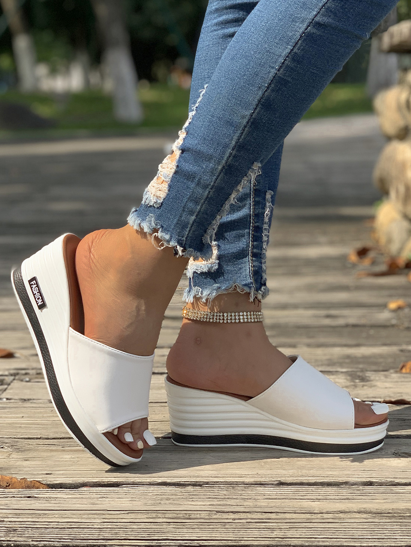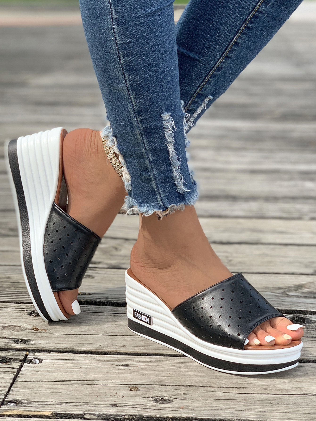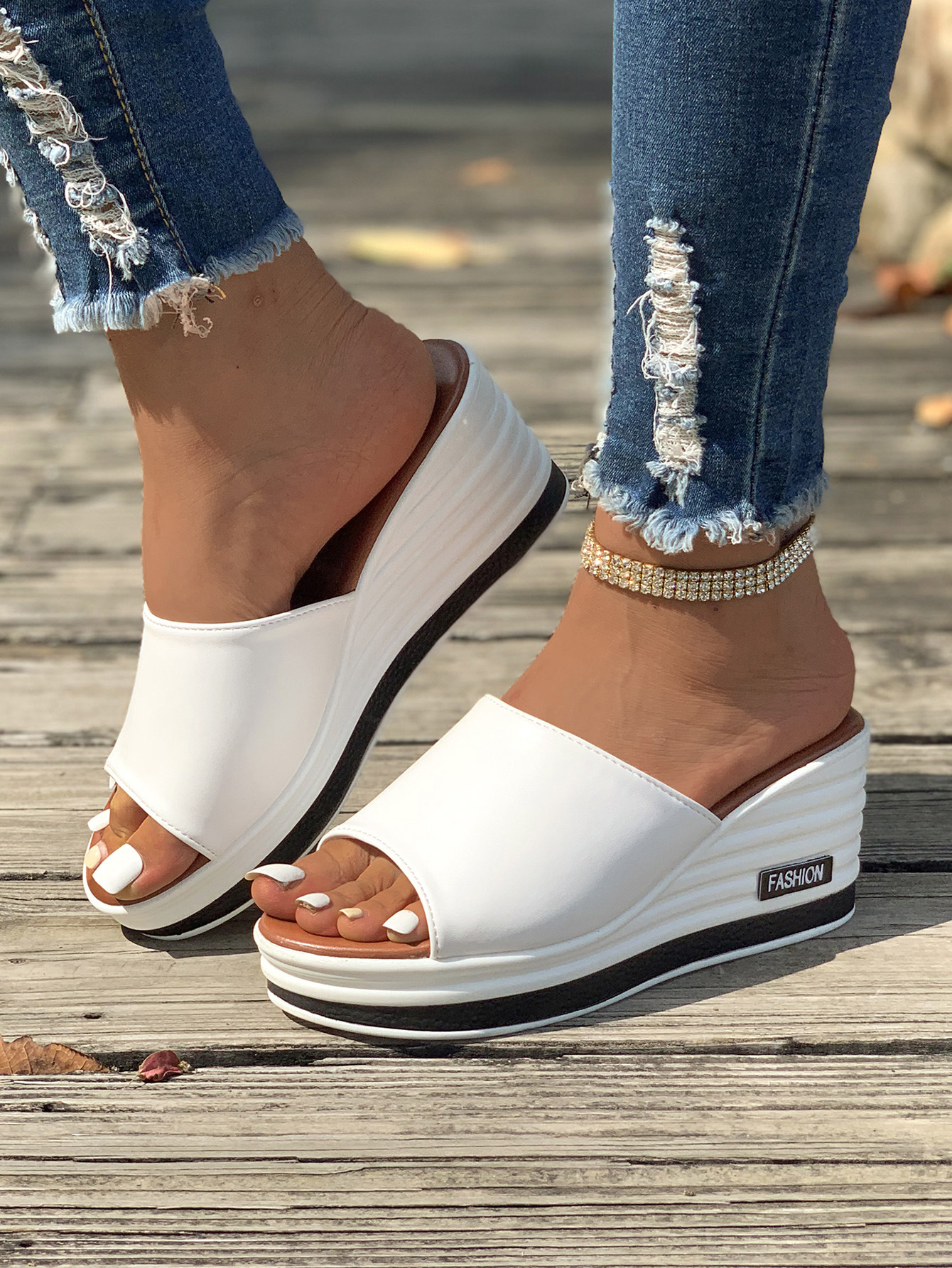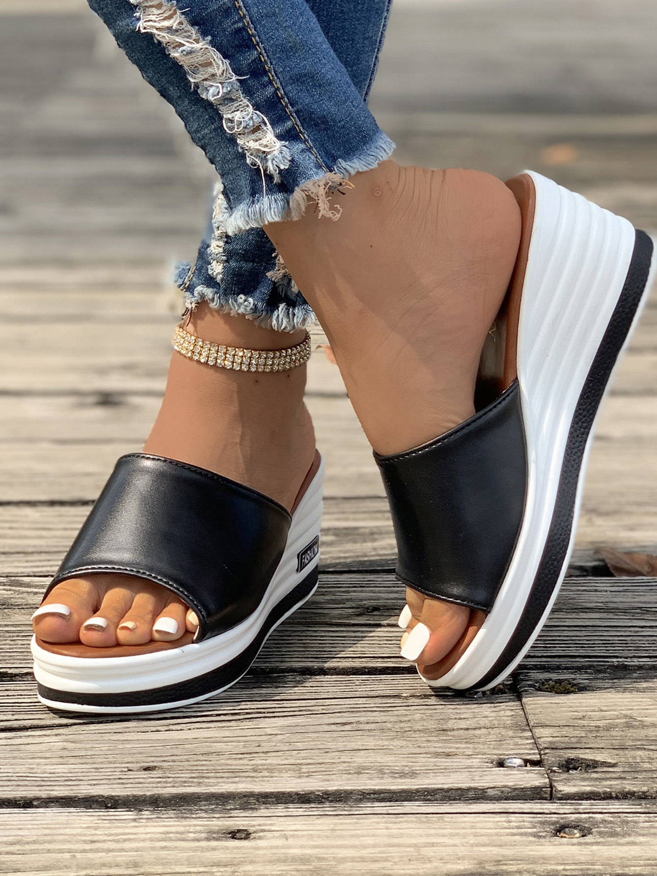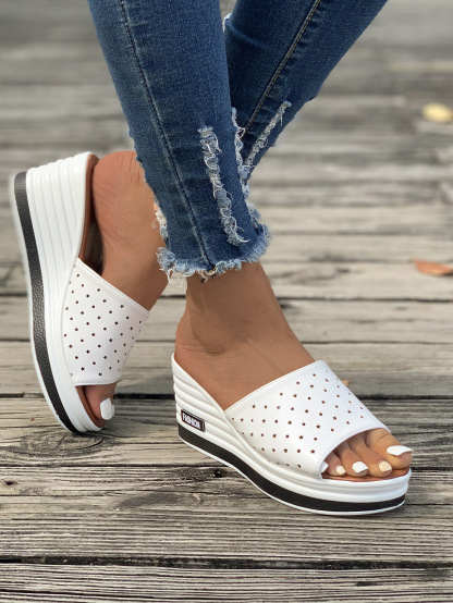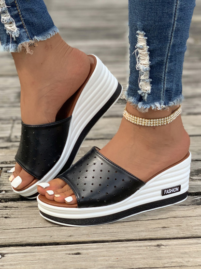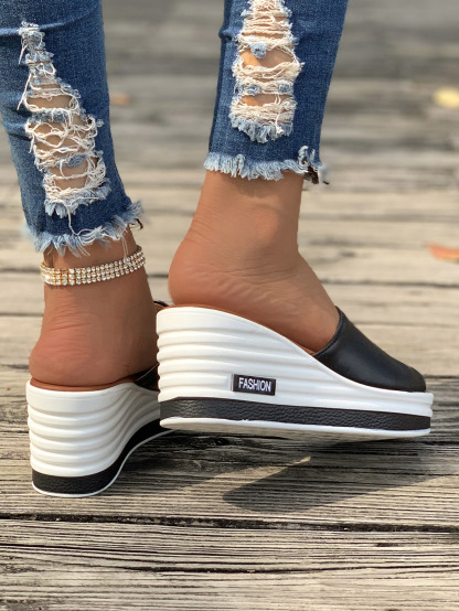 Women's Fashion Leather Slip On Wedge Sandals