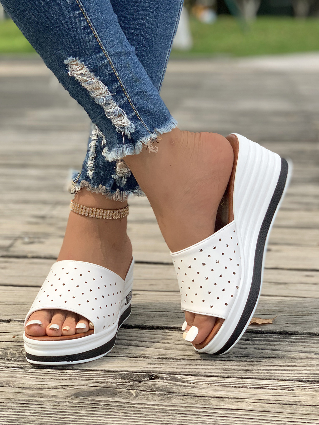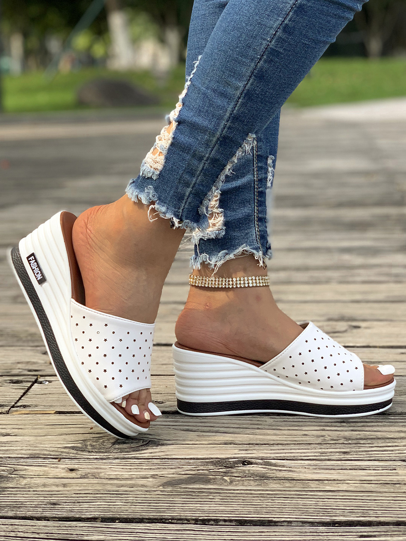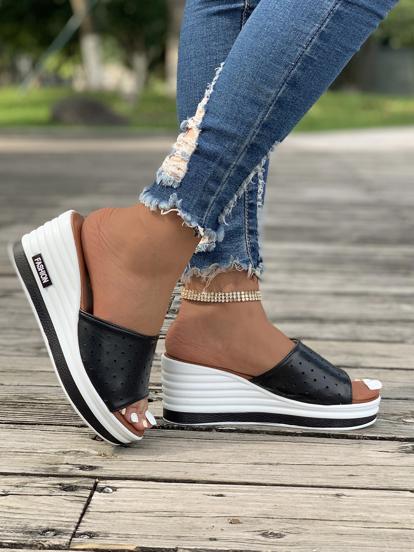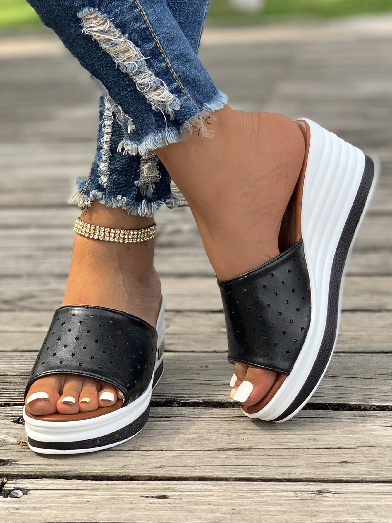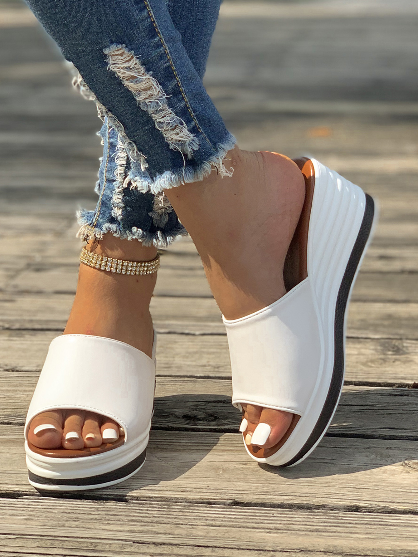 Women's Fashion Leather Slip On Wedge Sandals
