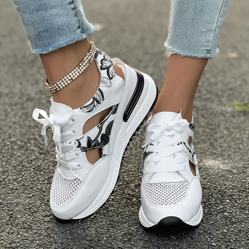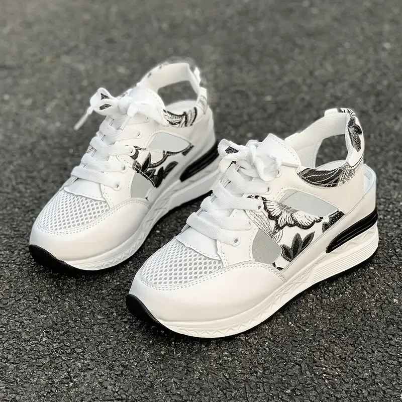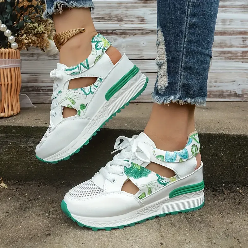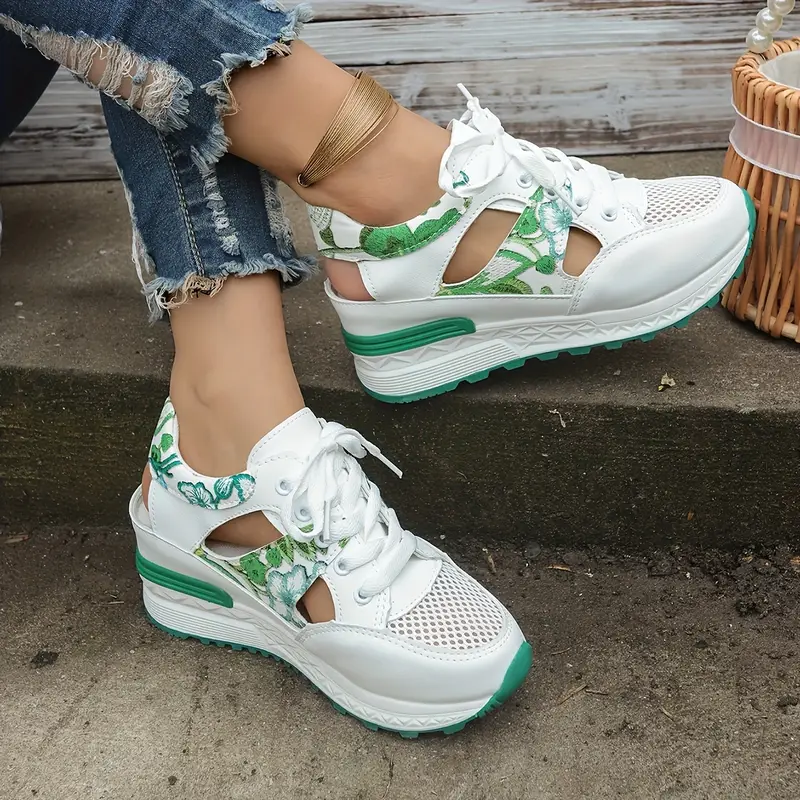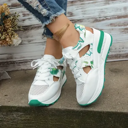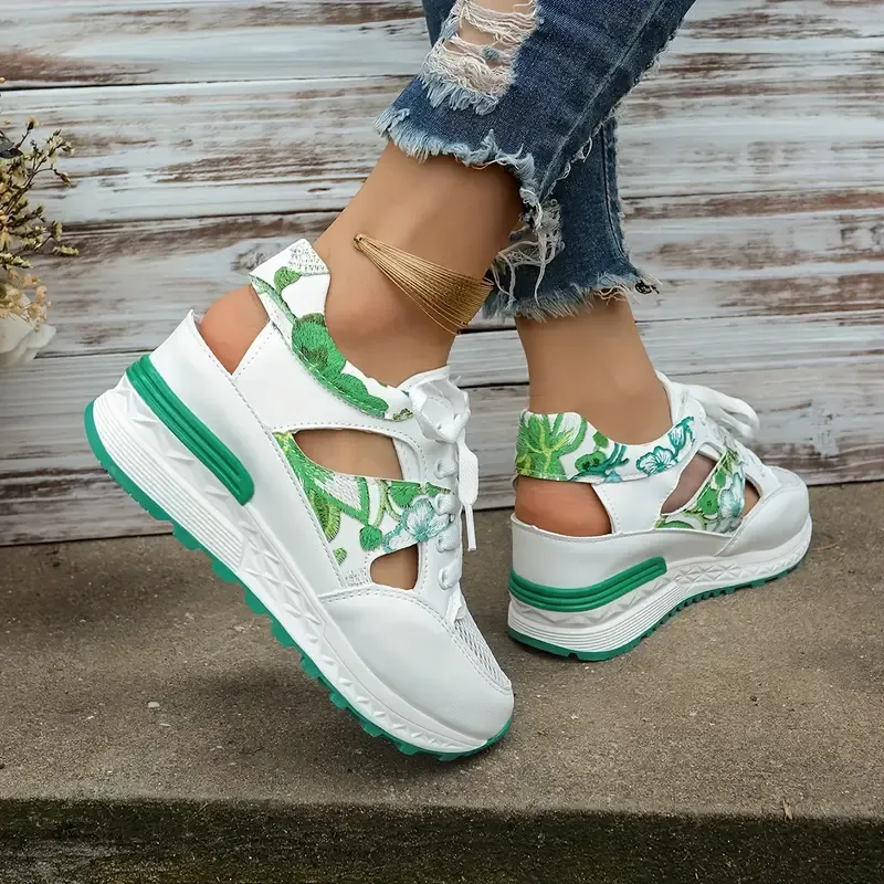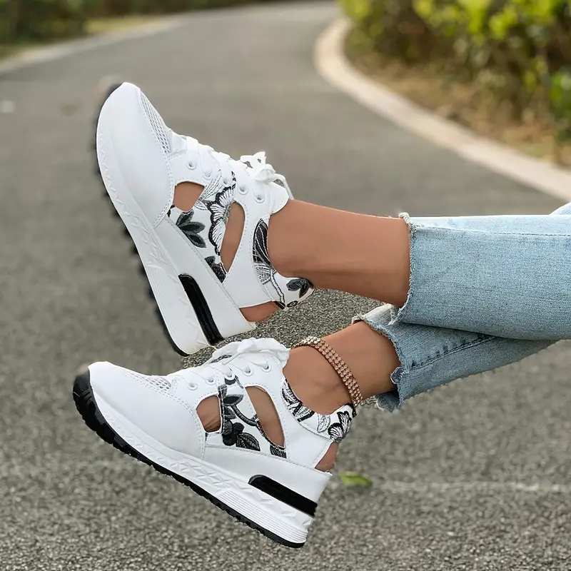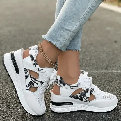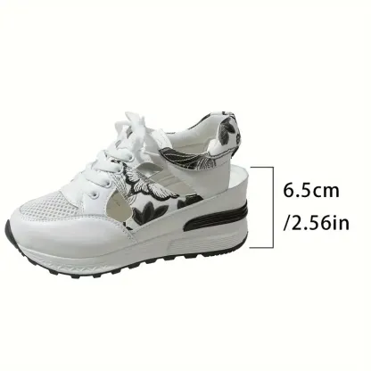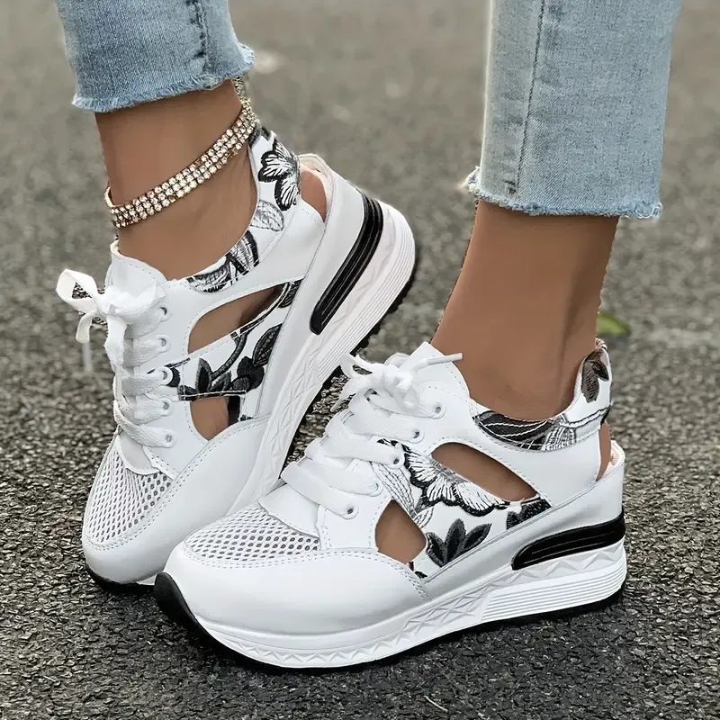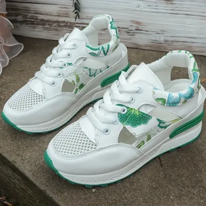 Women's Vintage Print Hollow Out Breathable Platform Wedge Sandals Comfort Walking Shoes