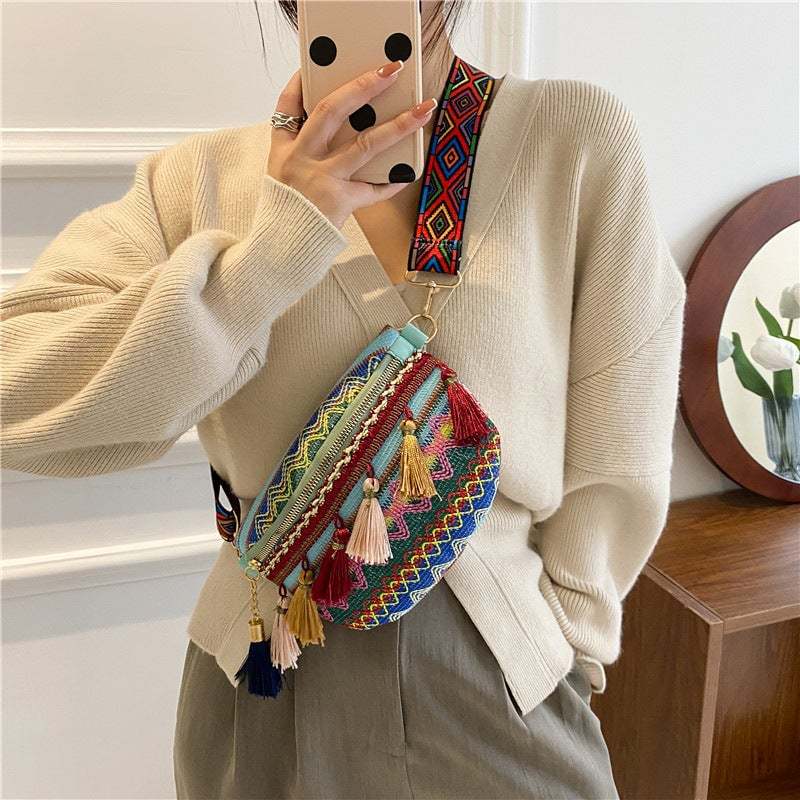 💥Blowout Sale- 49% OFF👜Colorful Woven Waist/Shoulder Bag