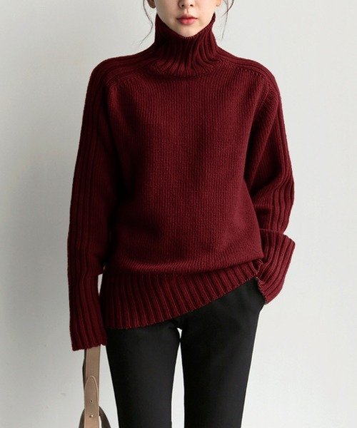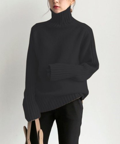 Simple Pit Strip Turtleneck Sweater