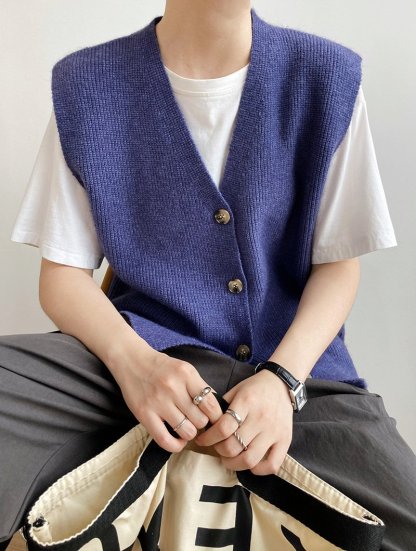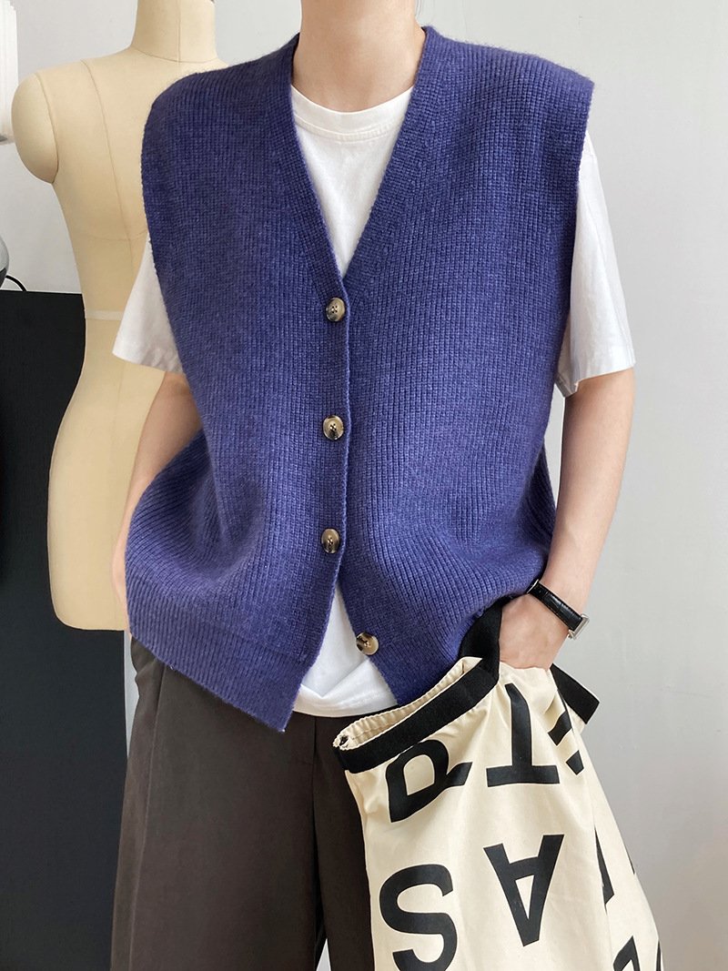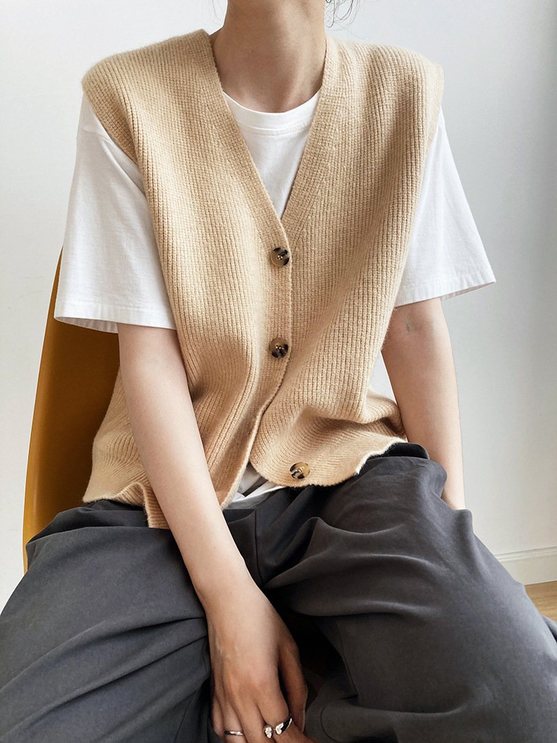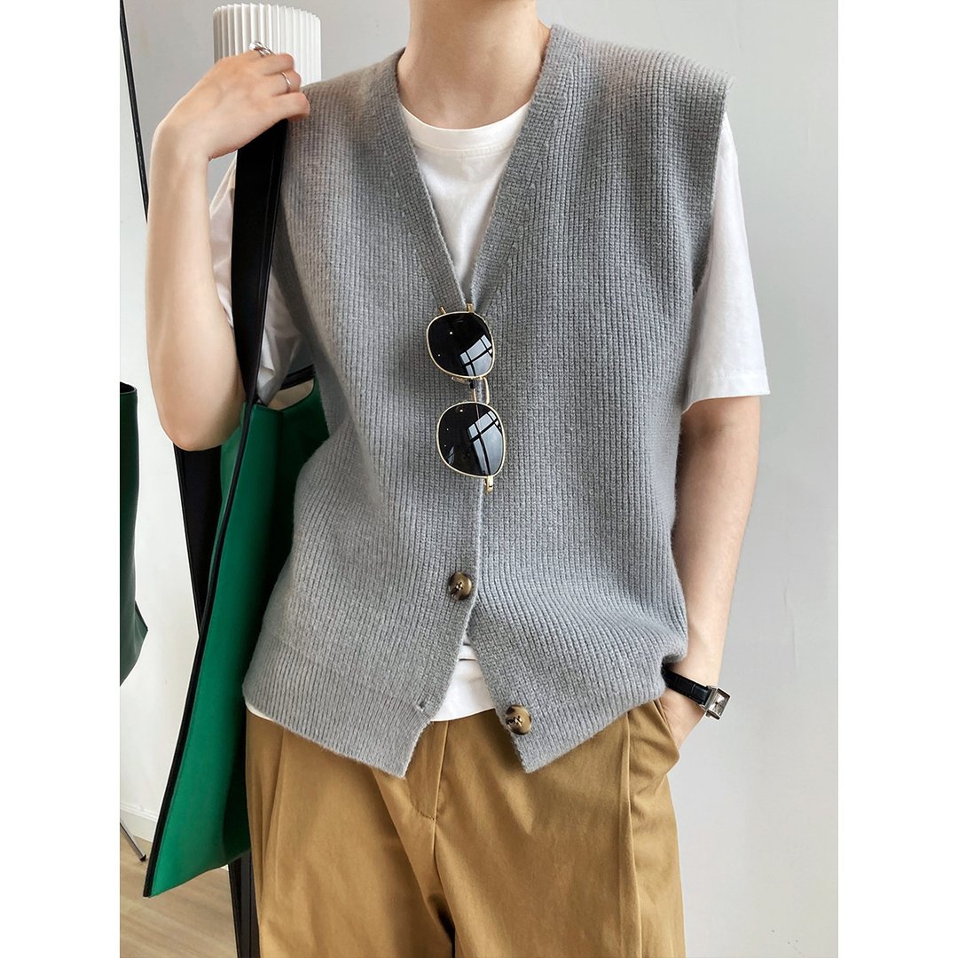 Texture Knit Cardigan Sleeveless Vest Sweater